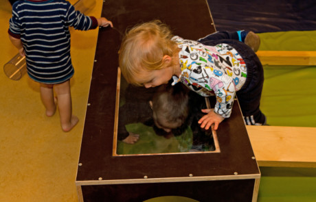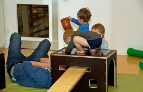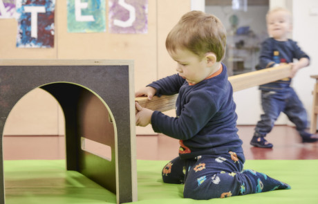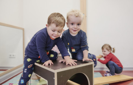 „Ich bin Nica“ ist eine Bewegungsbaustelle für Kinder unter drei Jahren. Die Kombination aus Holzkisten mit Aussparungen und teils transparenten Fenstern, naturbelassenen Holzteilen und Kunststoffrohren ermöglichen immer wieder neue Bewegungsanlässe. Die Bauteile können unterschiedlich zusammengesetzt werden und bieten damit eine Vielzahl von Bewegungs-, Spiel- und Nutzungsmöglichkeiten. Der Einsatz erfolgt in Innenräumen. Für eine platzsparende Lagerung.