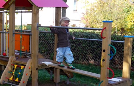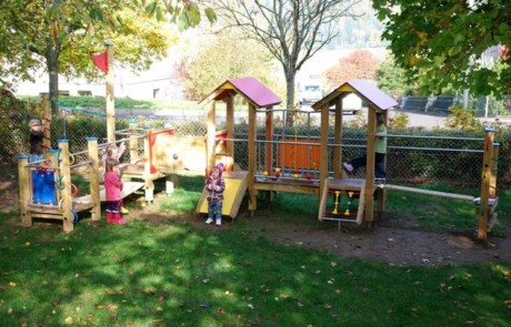 Die Firma S. H. Spessart Holzgeräte GmbH aus Kreuzwertheim, bietet Kindern ab 1½ Jahre diverse Spielkombinationen, u. a. bestehend aus Grundelementen (Türme/Podeste), Anbauelementen (Leitern, Treppen, Rutschen usw.) und Verbindungselementen (z.B. Netz-, Wackelbrücken) an. Mit dem hier zertifizierten „Spielgerät aus dem System CLEVERMOTO Nr. 33 2040 0006 – Einstein-Zwo“ stellt die Firma eine Spielkombination mit besonderem Anforderungsprofil vor. Kleinkinder können hier ihr altersgemäßes Spiel- und Explorationsbedürfnis durch selbstorganisierte Handlungsstrategien entfalten. Der Charakter der Spielkombination eröffnet ihnen vielseitige Möglichkeiten sich komplexe Wahrnehmungs- und Bewegungserfahrungen anzueignen. Körper- und Raumwahrnehmung und die in diesem Alter relevanten motorischen Fähigkeiten werden auf hohem Niveau gefordert und gefördert. Durch die zweckfreie und offene Anordnung der Spielkombination werden die Kinder mit ihrer unterschiedlichen Risikobereitschaft zu individuellen Lösungsstrategien herausgefordert.