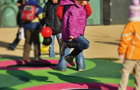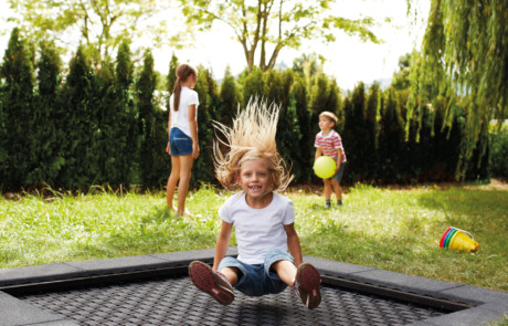 Bei „Kids Tramp“ und seiner konzeptionellen Ausgestaltung „Faszination Springen und mehr“ handelt es sich um ein für Kinder selbsterklärendes Angebot zum Springen und damit kombinierbaren Spiel-, Bewegungs- und Lernanlässen auf Outdoor-Bodentrampolinen. Das Bedürfnis des Kindes, sich von einem elastischen Untergrund für einen kurzen Moment der Schwerelosigkeit auszusetzen, mit der Raum-Lage-Orientierung zu spielen und im Gleichgewicht zu bleiben, wird in besonderem Maße aufgegriffen. Damit einhergehend werden fundamentale Reize mit nachhaltigen Effekten auf die Sensomotorik gesetzt. Dies hat positive Auswirkungen auf die sich entwickelnde Bewegungskoordination, die Körperwahrnehmung und das Haltungs-/Körperbewusstsein. Darüber hinaus werden wichtige neuroplastische Botenstoffe freigesetzt, die wichtig für Nervenzellwachstum und Nervenzellvernetzung und damit für die Hirnplastizität sind. Jedes Kind, unabhängig von seinem motorischen Fähigkeitsniveau, findet auf dem „Kids Tramp“ seinen eigenen Zugang und kommt über diese Selbsttätigkeit schnell zu Erfolgserlebnissen. Dies sorgt für ein höheres Selbstbewusstsein und eine Aktivierung der Selbstsicherungskompetenz.
